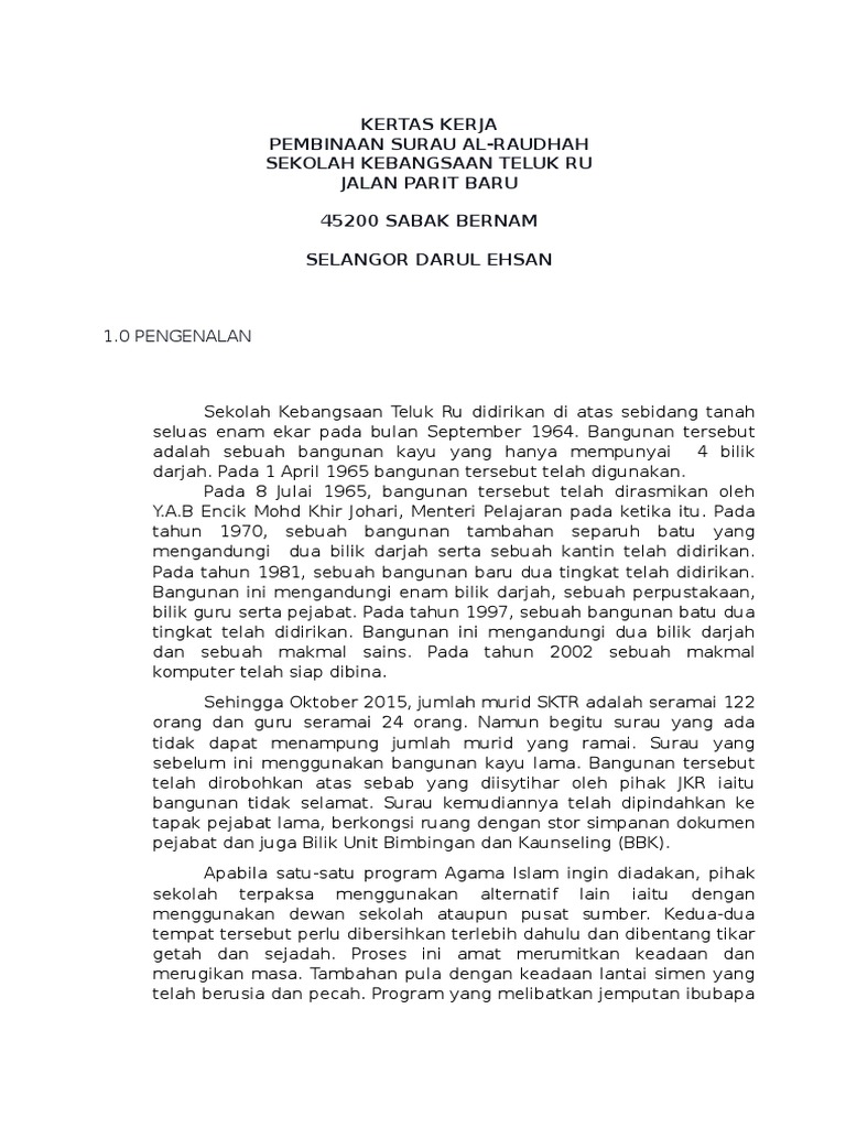 Kertas Kerja Pembinaan Surau Sk Teluk Ru Pdf